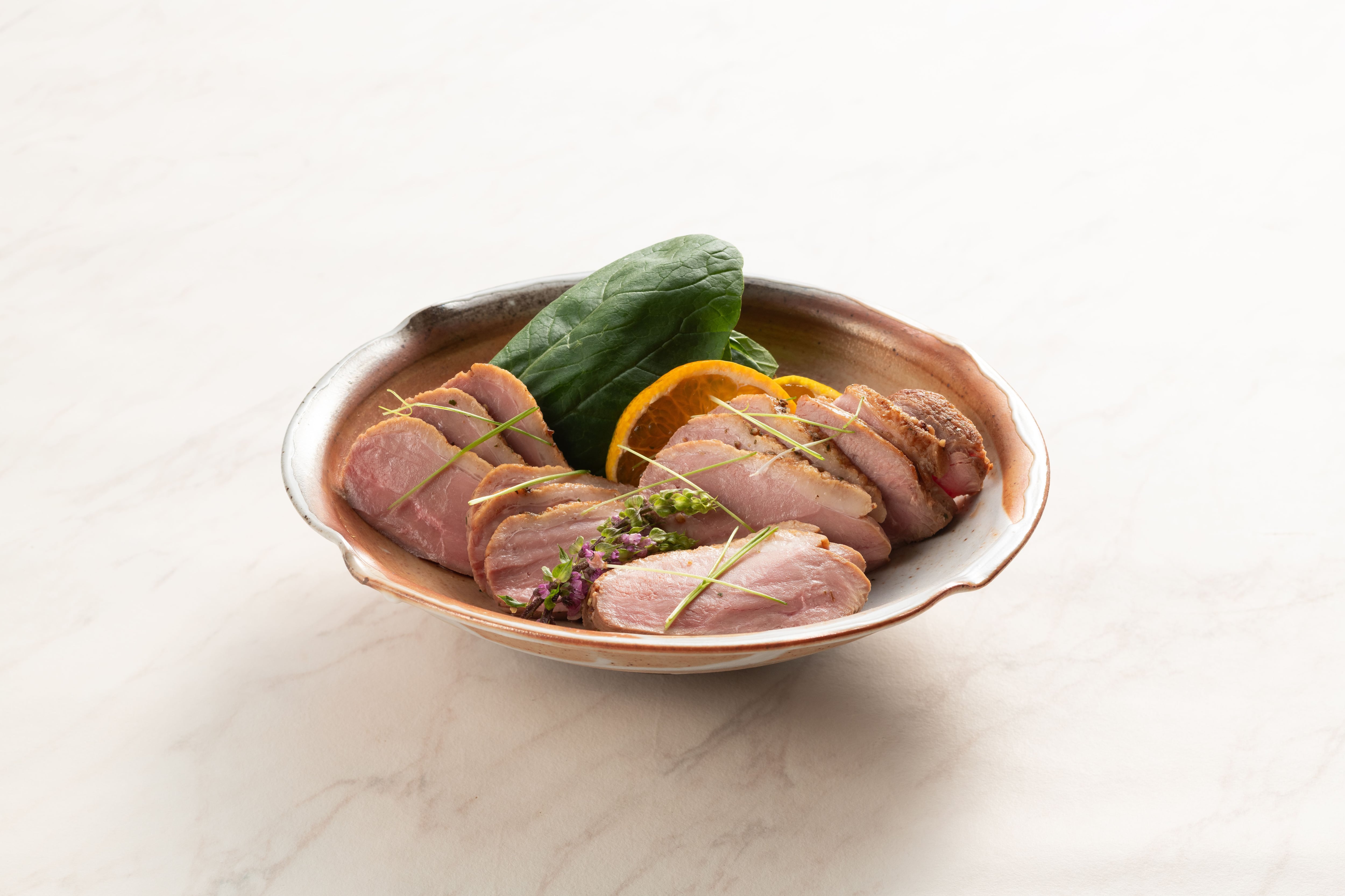 厳選された合鴨を使用し、甘酸っぱい佐賀みかんを添えてじっくりと低温調理した贅沢な逸品です。合鴨の柔らかな食感と、みかんの爽やかな風味が絶妙に融合し、一口ごとに広がる旨味をお楽しみいただけます。特別な日のおもてなしや、大切な方とのひと時にぴったりな一皿です。